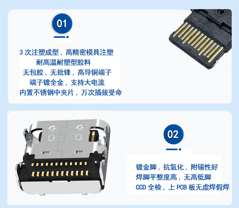 TYPE-C 6P板上防水母座外壳两脚Moiding款L7.85防水等级IPX6