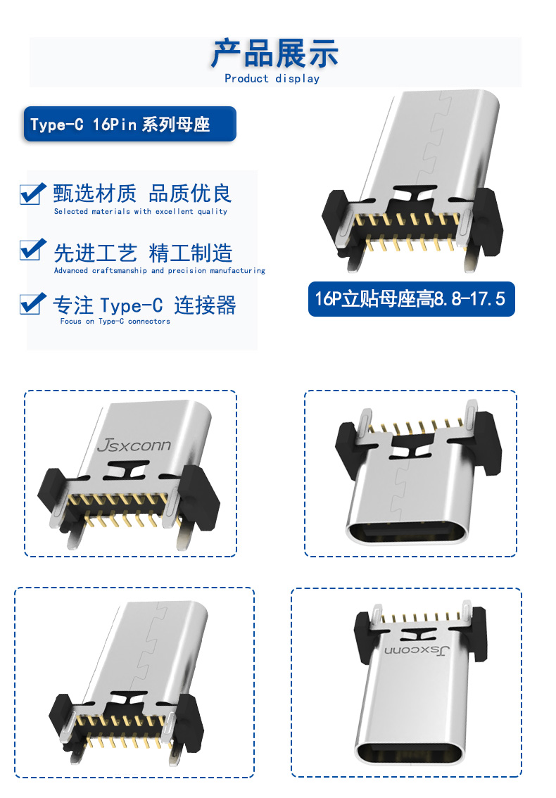 【名称】:TYPE-C 16PIN 母座 立贴 A款